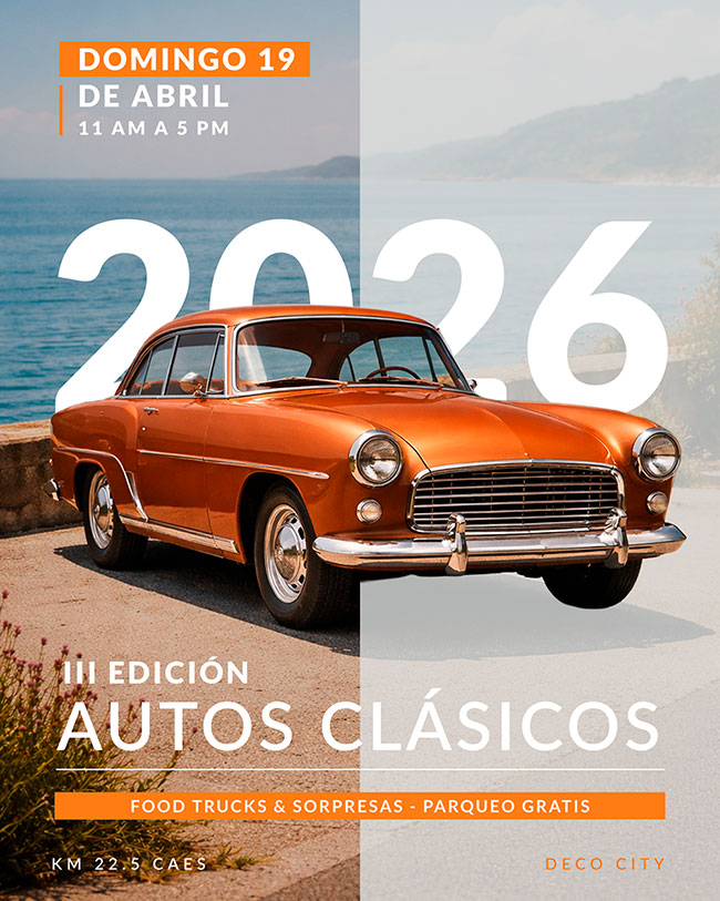 Motores, comida deliciosa y un ambiente increíble. 🏎️🍔 Regresa la III Expo Autos Clásicos a Deco City este 19 de Abril.